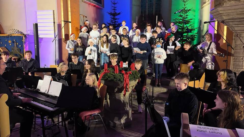 Im festlich beleuchteten Kirchenschiff erlebt die Schulfamilie gemeinsam mit vielen Gästen ein buntes, unterhaltsames und vielfältiges Konzert voller Gänsehautmomente, das für Weihnachtsstimmung im Publikum sorgt.